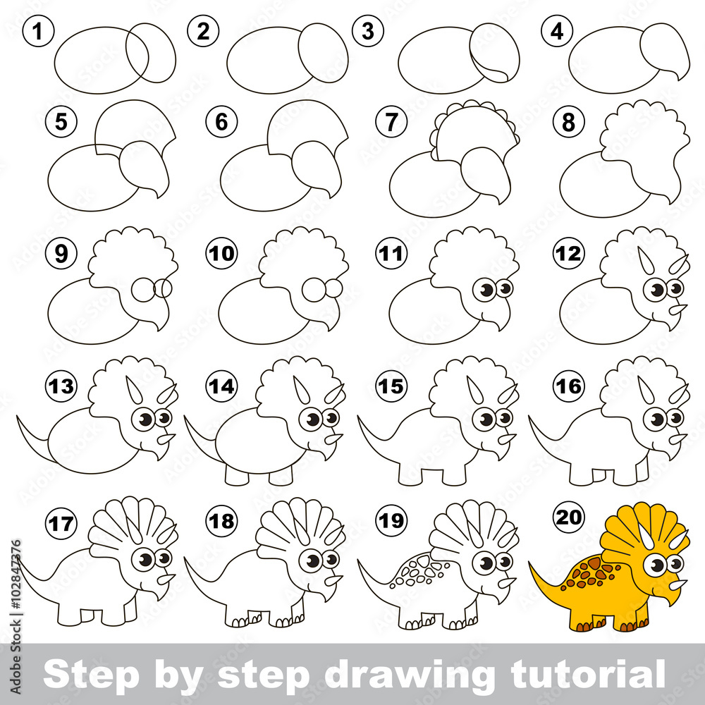 Triceratops Drawing Tutorial Stock Vektorgrafik Adobe Stock